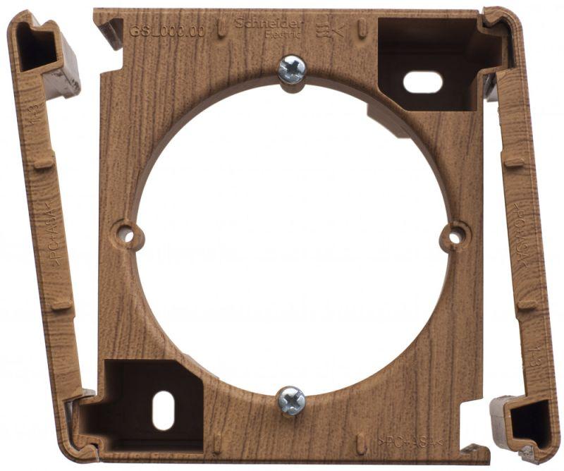 Коробка Systeme Electric (ранее Schneider Electric) серии Glossa (цвет дерево дуб) наружного монтажа. - Позволяет установить любую функцию скрытого монтажа на стену (как изделие открытого монтажа). - Выполнена из материала PС+ASA, стойкого к УФ-излучению и появлению царапин.