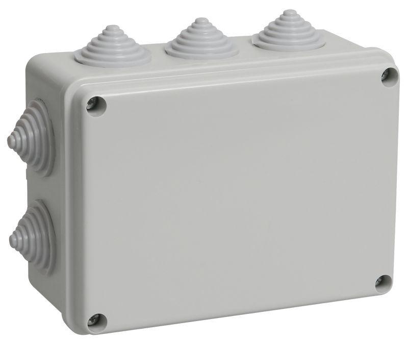 Монтажные коробки для открытого монтажа предназначены для разветвления проводов и кабелей, также для скрытия и дополнительной защиты мест коммутации. Используются как часть системы электрической канализации, состоящей из жестких и гофрированных труб. Коробки с повышенной степенью защиты могут быть использованы на открытом воздухе, а также во влажных и пыльных помещениях. Подходят для прямого монтажа. Материал изготовления: полистирол. Материал коробок является безгалогенным («HF» — halogen-free). Цвет: серый. Степень защиты: IP44. Температура эксплуатации: -25...+40. Количество вводов: 10 - D=25мм. Размер: 150х110х70мм.