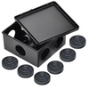Монтажные коробки для открытого монтажа предназначены для разветвления проводов и кабелей, также для скрытия и дополнительной защиты мест коммутации. Используются как часть системы электрической канализации, состоящей из жестких и гофрированных труб. Коробки с повышенной степенью защиты могут быть использованы на открытом воздухе, а также во влажных и пыльных помещениях. Подходят для прямого монтажа. Материал изготовления: основание - полистирол, крышка - полипропилен. Материал коробок является безгалогенным («HF» — halogen-free). Цвет: черный. Степень защиты: IP44. Температура эксплуатации: -25...+40. Количество вводов: 6 - D=25мм. Размер: 85х85х40мм.
