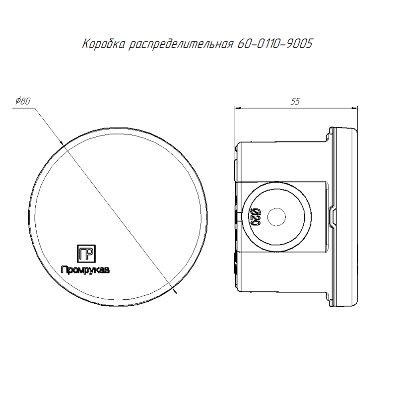Коробка распределительная 70х50мм двухкомпонентн. безгалоген. (HF) для прямого монтажа черн. Промрукав 60-0110-9005