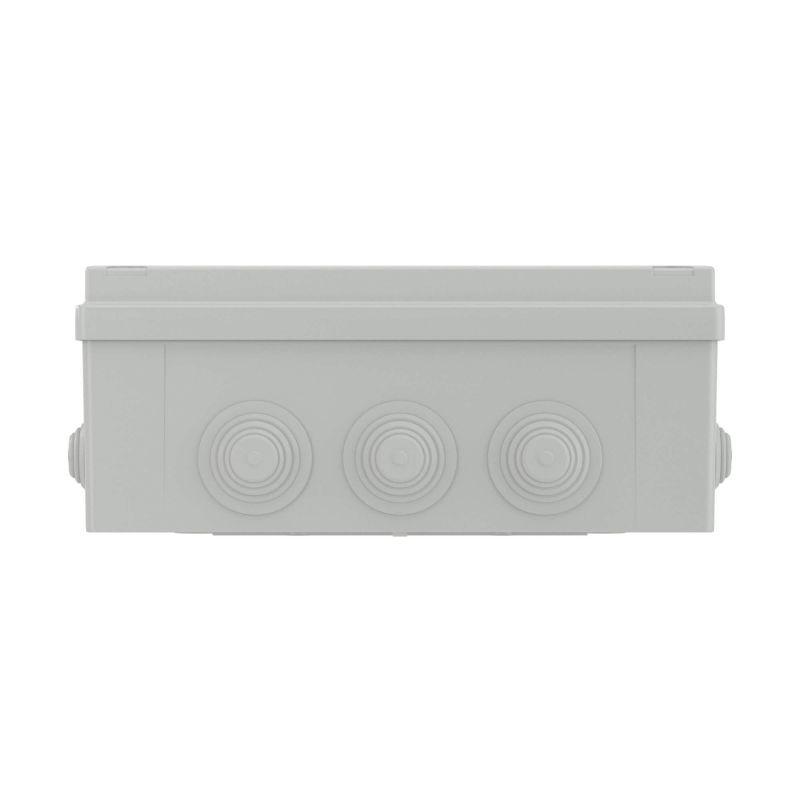 В состав системы "Express" входят жесткие и гибкие армированные трубы, аксессуары для их крепления и соединения, корпуса для накладного монтажа электроустановочных изделий ДКС серии "Viva". Жесткие гладкие трубы применяются для прокладки электрических, телефонных, телевизионных сетей, выполненных шнурами, кабелями, проводами. В серию входят ответвительные коробки для открытого настенного размещения. Они различаются по количеству и конструкции кабельных вводов. Ответвительные коробки серии "Express" обеспечивают быстрый монтаж и доступ к кабелю при необходимости. Коробка ответвительная с 10 кабельными вводами д. 40 мм. Размер коробки - 300х220х120 мм. Конструкция обеспечивает высокую степень герметизации - IP 55.