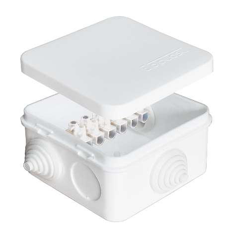 Коробка распределительная ОП 75х75х45мм IP54 10А 6 выходов 6 контактов 3 гермоввода клемм. крышка защелкивающаяся бел. Epplast 220323