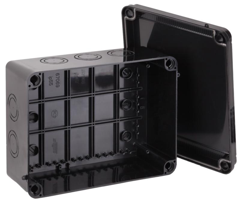 Коробка Тусо распаячная для ОП 300х220х120мм без гермовводов УХЛ1 IP67 черн. Ruvinil 67068Ч