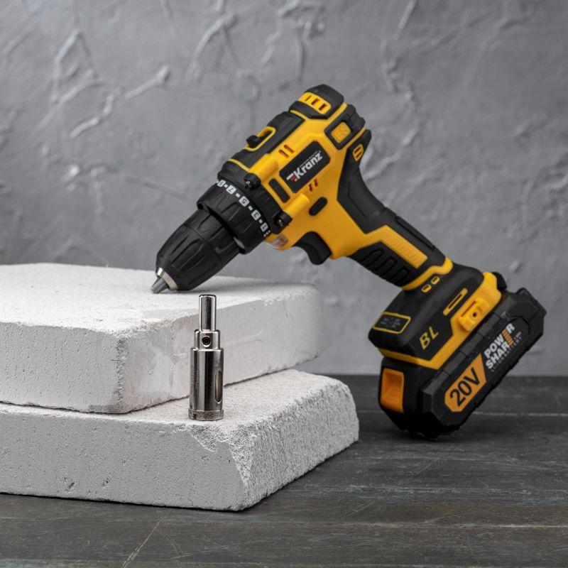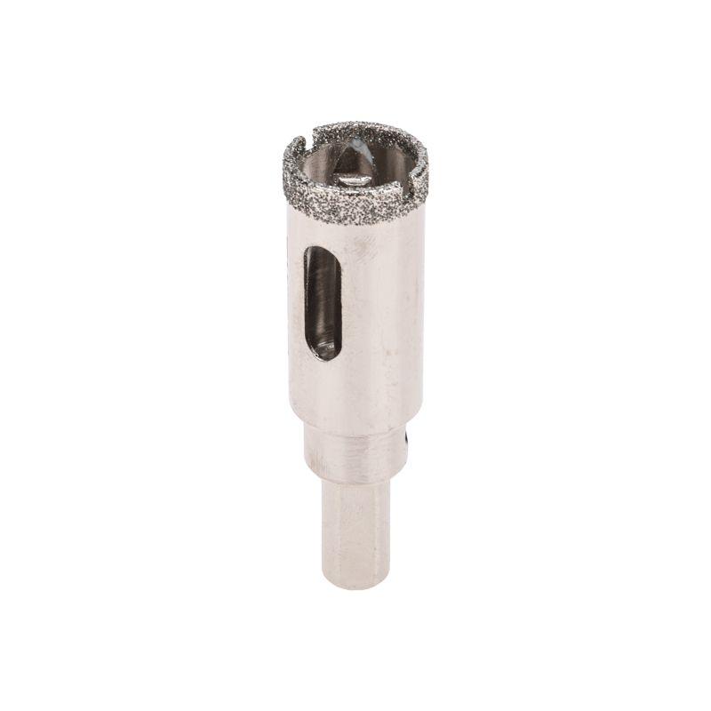 Алмазная коронка диаметром 20 мм используется при сверлении керамогранита, керамики, стекла. Наличие центровочного сверла обеспечивает точное позиционирование коронки на поверхности и помогает избежать смещения во время работ. Покрытие алмазной коронки выполнено гальваническим способом в два слоя, что обеспечивает эффективное сверление и продолжительный рабочий ресурс инструмента. Равномерное распределение алмазов по режущей кромке гарантирует аккуратное сверление материала без трещин и сколов. Высота алмазного слоя в 6 мм обеспечивает высокую производительность, а трехгранный хвостовик – надежную фиксации в патроне. При использовании алмазных коронок для сверления отверстий необходимо охлаждение, которое достигается путем подачи воды в рабочую зону.