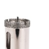 Алмазная коронка диаметром 25 мм используется при сверлении керамогранита, керамики, стекла. Наличие центровочного сверла обеспечивает точное позиционирование коронки на поверхности и помогает избежать смещения во время работ. Покрытие алмазной коронки выполнено гальваническим способом в два слоя, что обеспечивает эффективное сверление и продолжительный рабочий ресурс инструмента. Равномерное распределение алмазов по режущей кромке гарантирует аккуратное сверление материала без трещин и сколов. Высота алмазного слоя в 6 мм обеспечивает высокую производительность, а трехгранный хвостовик – надежную фиксации в патроне. При использовании алмазных коронок для сверления отверстий необходимо охлаждение, которое достигается путем подачи воды в рабочую зону.