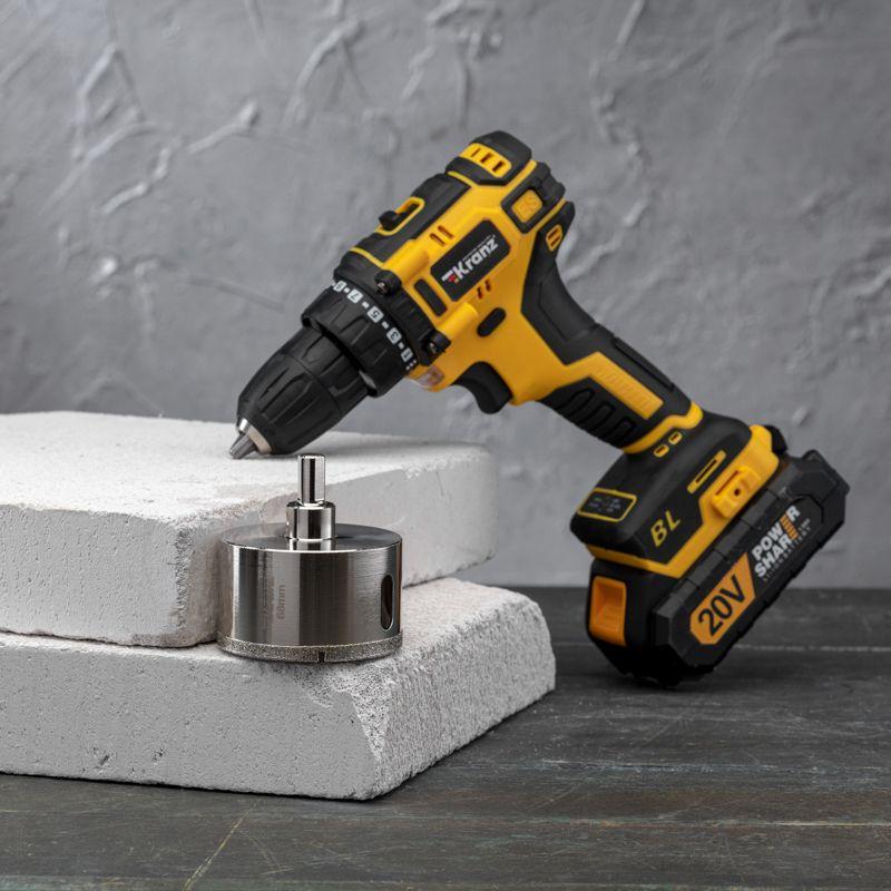 Алмазная коронка диаметром 68 мм используется при сверлении керамогранита, керамики, стекла. Наличие центровочного сверла обеспечивает точное позиционирование коронки на поверхности и помогает избежать смещения во время работ. Покрытие алмазной коронки выполнено гальваническим способом в два слоя, что обеспечивает эффективное сверление и продолжительный рабочий ресурс инструмента. Равномерное распределение алмазов по режущей кромке гарантирует аккуратное сверление материала без трещин и сколов. Высота алмазного слоя в 6 мм обеспечивает высокую производительность, а трехгранный хвостовик – надежную фиксации в патроне. При использовании алмазных коронок для сверления отверстий необходимо охлаждение, которое достигается путем подачи воды в рабочую зону.