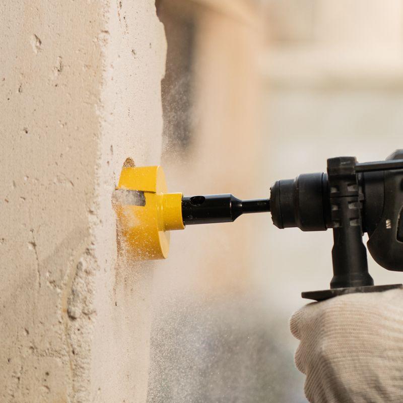 Алмазная коронка KRANZ используется для сверления отверстий в конструкциях из бетона, армированного бетона, кирпичной кладки и силикатного кирпича с помощью перфоратора. Предназначена для профессионального применения. Оптимально подходит для выполнения отверстий под розетки. Предусмотрено сухое и мокрое сверление. Водяное охлаждение продлевает срок службы инструмента. Коронка оснащена хвостовиком SDS PLUS. Рабочая часть состоит из 5 режущих сегментов высотой 10 мм. Предназначена для работы в режиме безударного сверления, что обеспечивает аккуратность отверстий и уменьшает количество пыли при работе. Рекомендуемая частота оборотов 600-900 об/мин. В комплекте поставляется центрирующее сверло. Инструмент имеет долгий срок службы и сохраняет свои режущие свойства на протяжении всего периода эксплуатации.