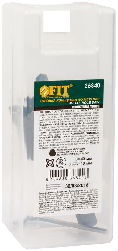 Коронка кольцевая с карбидными вставками Профи (для отверстий в нержав. стали) 40мм FIT 36840