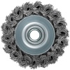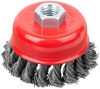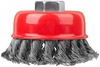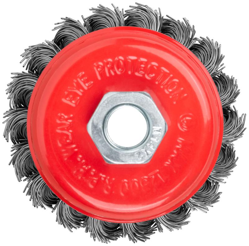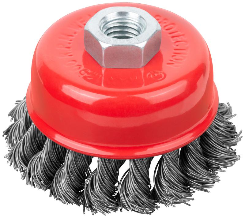 Корщетка-насадка для УШМ FIT IT типа ‘’чашка’’ предназначена для грубой обработки дерева и металла, снятия краски. Форма «чашка» обеспечивает хорошую площадь прилегания к поверхности. Стальная витая проволока обеспечивает высокую скорость и эффективность работы. Гайка с резьбой М14 обеспечивает прочную фиксацию на УШМ.