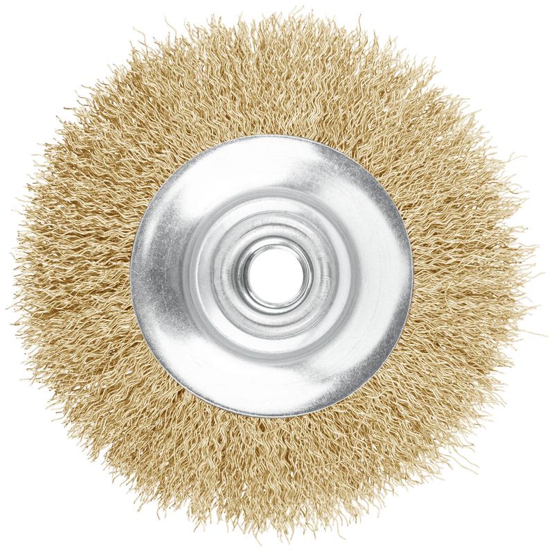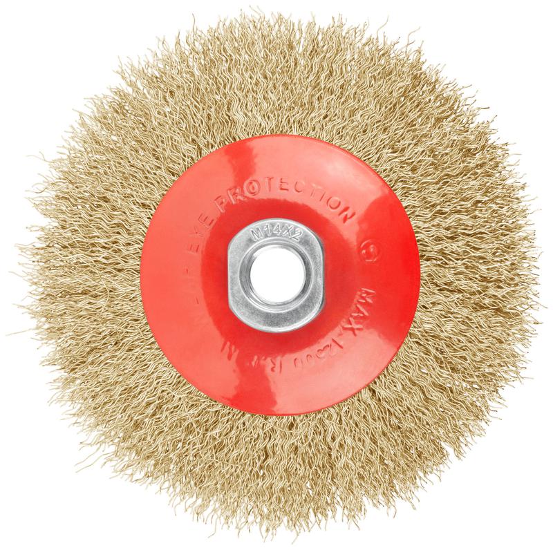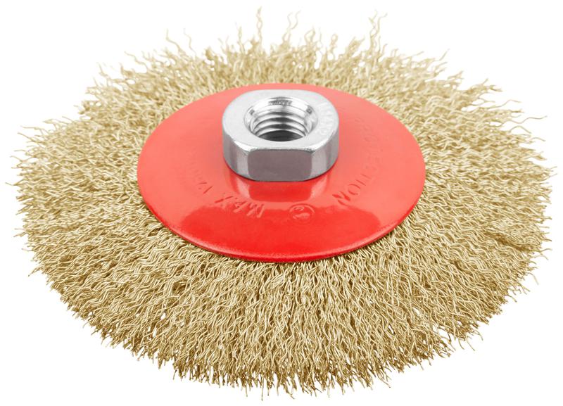 Корщетка-колесо с наклоном гайка М14 стальная латунированная волнистая проволока 115мм FIT 39051