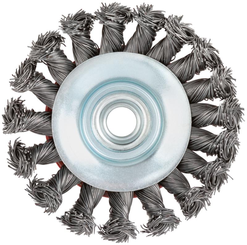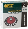 Корщетка-насадка для УШМ FIT IT типа ‘’колесо’’ предназначена для грубой обработки дерева и металла, зачистки сварных швов, снятия краски и ржавчины. Стальная витая проволока обеспечивает высокую скорость и эффективность работы. Корщетка типа «колесо» наиболее эффективна при обработке стыков, углов, пазов и различных труднодоступных мест. Гайка с резьбой М14 обеспечивает прочную фиксацию на УШМ.