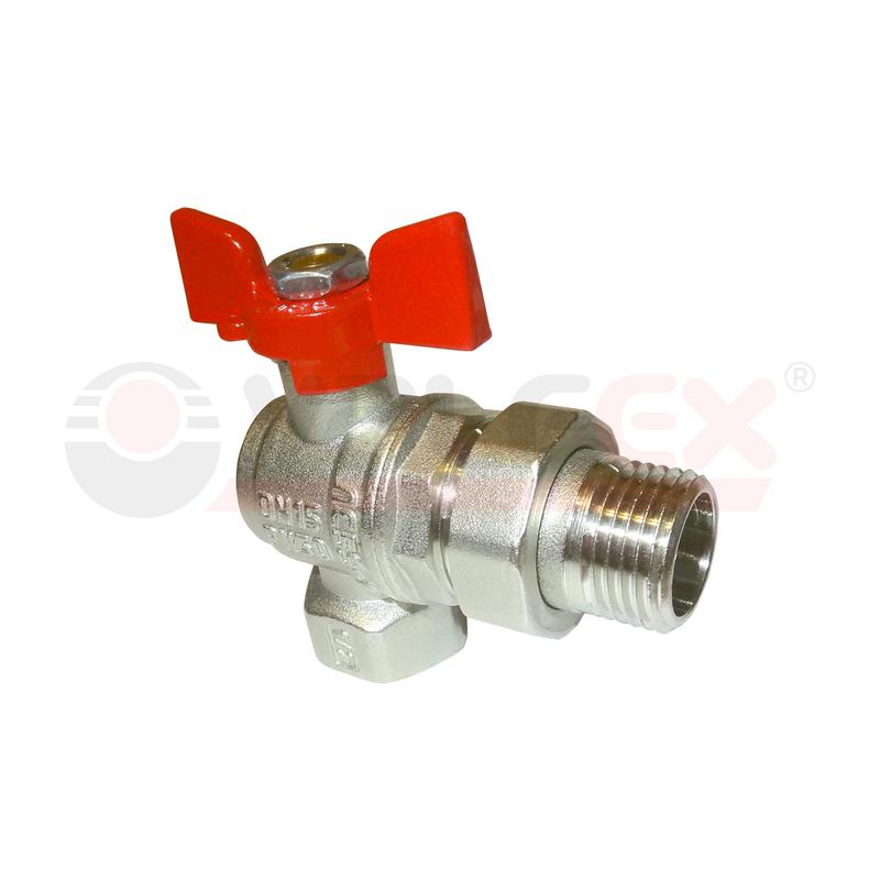 Кран шаровой латунный PREMIUM для ВОДЫ 1/2дюйм ВР/НР угл. с америк.. бабочка НИКЕЛ 11Б27фт1М (48/12) VALFEX VF.269.NB1.012.PREMIUM