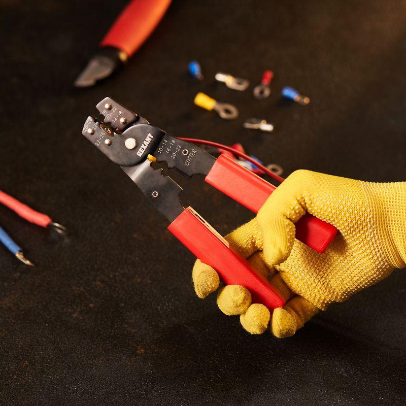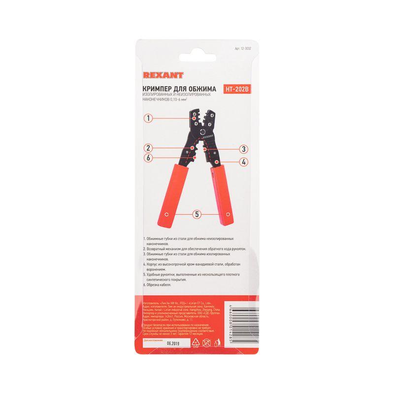 Кримпер HT-202B предназначен для обжима неизолированных и изолированных клемм сечением 0,10-6 мм2. Корпус инструмента изготовлен из высокопрочной закаленной инструментальной стали с воронением, а цельнометаллическая конструкция обжимных губок обеспечивает дополнительную прочноть. Оснащены режущей кромкой для ровной и качественной обрезки проводников. Возвратный механизм автоматически возвращает ручки в исходное положение после каждого цикла обжима. Нескользящие рукоятки выполнены из плотного синтетического материала, что делает работу комфортной и безопасной даже при длительном использовании.
