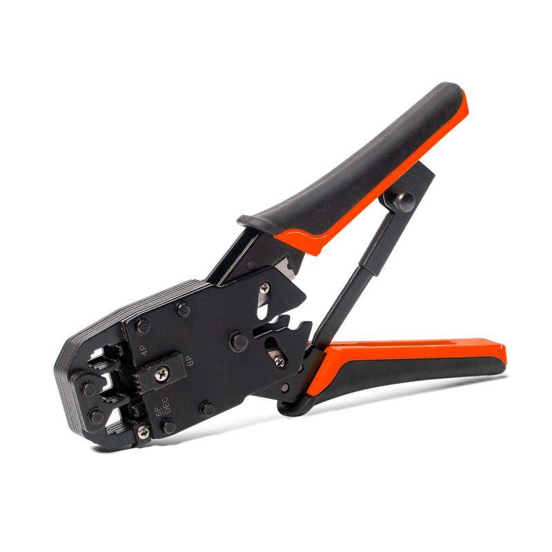 • 4 в 1: • обжим разъемов RJ • снятие изоляции с плоских телефонных проводов • снятие оболочки с круглых проводов типа UTP, STP • резка проводов • Параллельный ход пуансонов гарантирует профессиональное качество работ • 3 встроенные матрицы: 8Р, 6Р, 4Р • Обжим разъемов: • 8Р8С (RJ-45), 6Р6С (RJ-12), 6P4C (RJ-11), 6Р2С, 4P4C, 4P2C • Встроенный храповой механизм обеспечивает полный цикл опрессовки • Винт для экстренной разблокировки матриц • Покрытие корпуса: воронение • Надежный механизм в прочном металлическом корпусе • Двухкомпонентные нескользящие рукоятки • Вес: 530 г • Длина: 205 мм