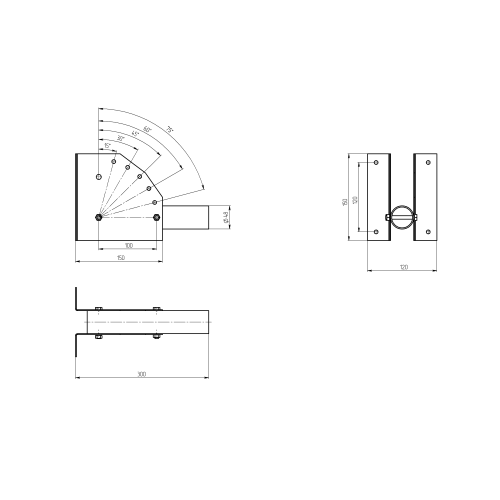 Кронштейн с переменным углом (шаг 15), для уличного (консольного) светильника, крепление болтами или бандажной лентой, вылет 300мм