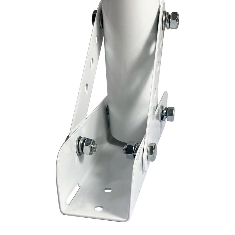 Кронштейн предназначен для установки консольных уличных светильников на вертикально несущие плоские поверхности, на опоры стальные, деревянные, бетонные. Крепится с помощью анкерных болтов или СИП ленты. Несущий элемент может фиксироваться под углом наклона к горизонтальной плоскости от 15 до 60 градусов с шагом 15 градусов. Допустимый вес нагрузки до 20 кг. Изготовлен из стали, покрашен порошковой краской.