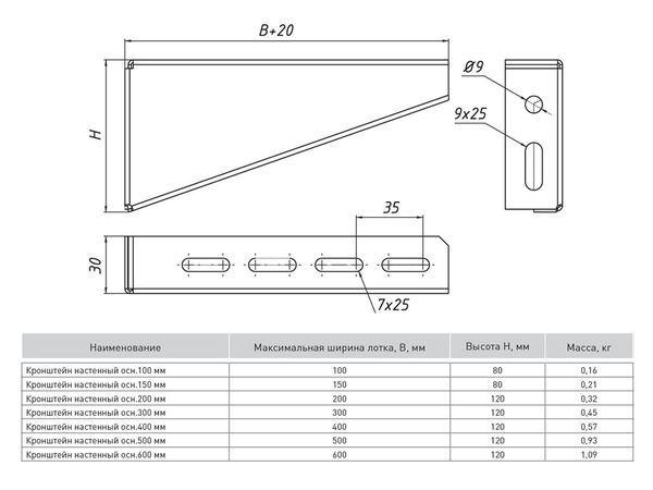 Кронштейн настенный осн.200 1.5мм сталь EKF kn200