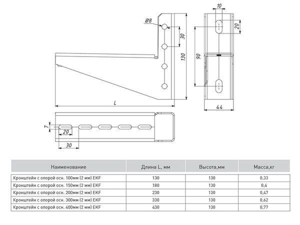 Кронштейн с опорой осн. 100мм 2мм HDZ EKF kop100-HDZ