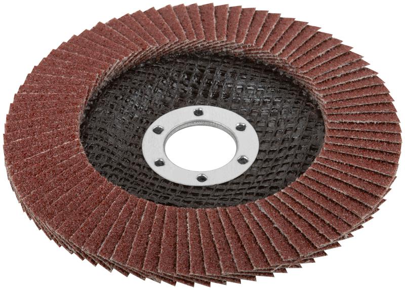 Тип 2 (Конический). Для обработки различных материалов. Используется с УШМ. 80 лепестков. Лепестки расположены под углом. Посадочный диаметр 22,2 мм. Материал: полимерная основа, образивный слой-оксид алюминия.