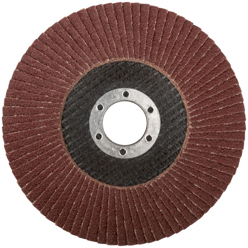 Круг лепестковый торцевой FIT IT предназначен для сухого шлифования и снятия краски с нержавеющей стали, инструментальной стали, чугуна, цветных металлов, пластика и дерева. Коническая форма круга обладает хорошей эргономикой и повышенной эффективностью во время проведения работ. Абразивный слой из кальцинированного оксида алюминия способствует высокой скорости выполнения работ, а также обладает повышенной износостойкостью. Каждый круг имеет 72 лепестка с целью увеличения ресурса работы. Хлопчатобумажная основа лепестков обладает высокой прочностью и эластичностью. Прочная основа из стекловолокна обеспечивает безопасность выполнения работ.