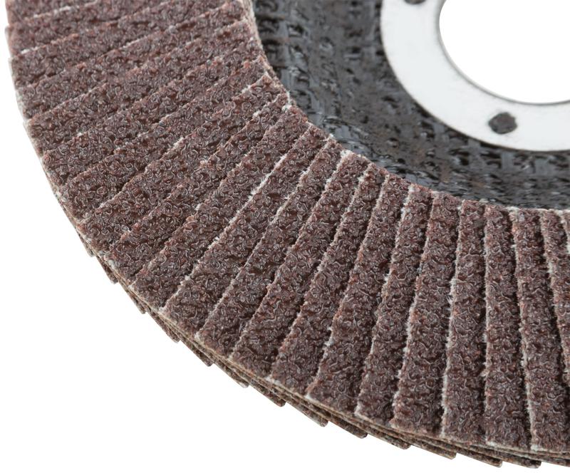 Круг наждачный лепестковый торцевой Cutop Profi предназначен для обработки металла и нержавеющей стали. Используется с УШМ. При изготовлении кругов используется высококачественный гибкий абразивный материал, состоящий из тканевой основы, на которую нанесен слой кальцинированного оксида алюминия. Данный абразив имеет более твердые частицы, чем обычный оксид алюминия, что позволяет увеличить скорость обработки поверхности. Наполняемость диска составляет 80 лепестков с углом наклона 10 градусов, что позволяет увеличить КПД круга и его стойкость к износу в несколько раз.