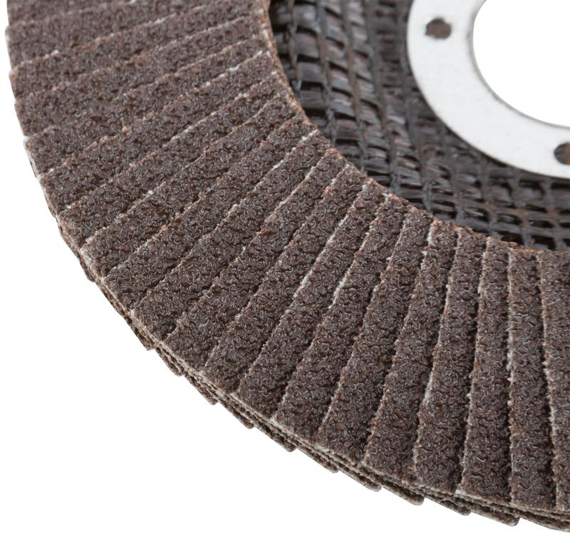 Круг наждачный лепестковый торцевой Cutop Profi предназначен для обработки металла и нержавеющей стали. Используется с УШМ. При изготовлении кругов используется высококачественный гибкий абразивный материал, состоящий из тканевой основы, на которую нанесен слой кальцинированного оксида алюминия. Данный абразив имеет более твердые частицы, чем обычный оксид алюминия, что позволяет увеличить скорость обработки поверхности. Наполняемость диска составляет 80 лепестков с углом наклона 10 градусов, что позволяет увеличить КПД круга и его стойкость к износу в несколько раз.