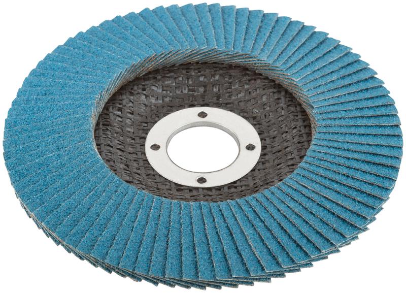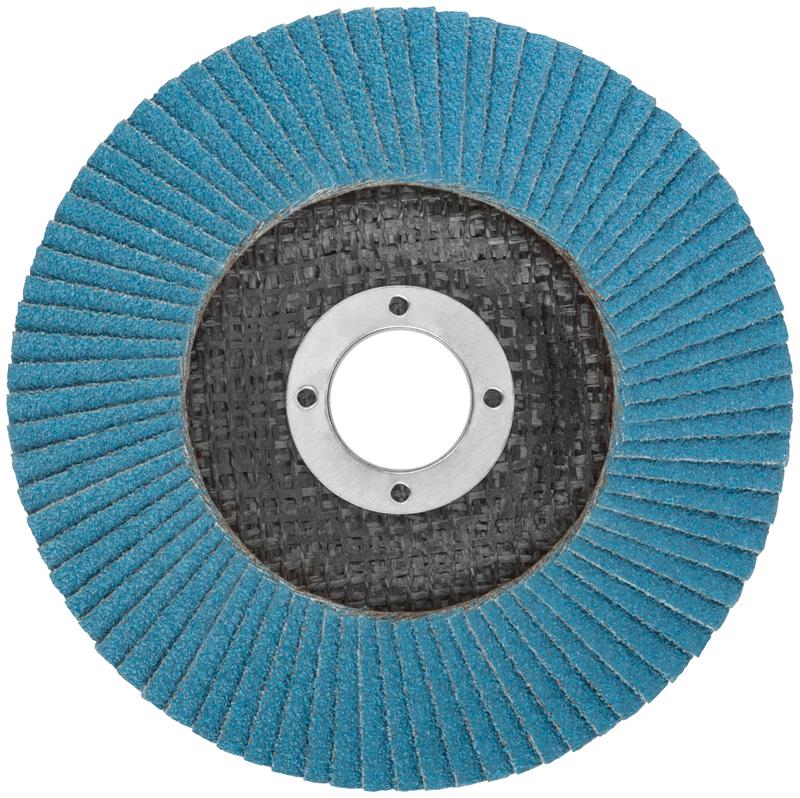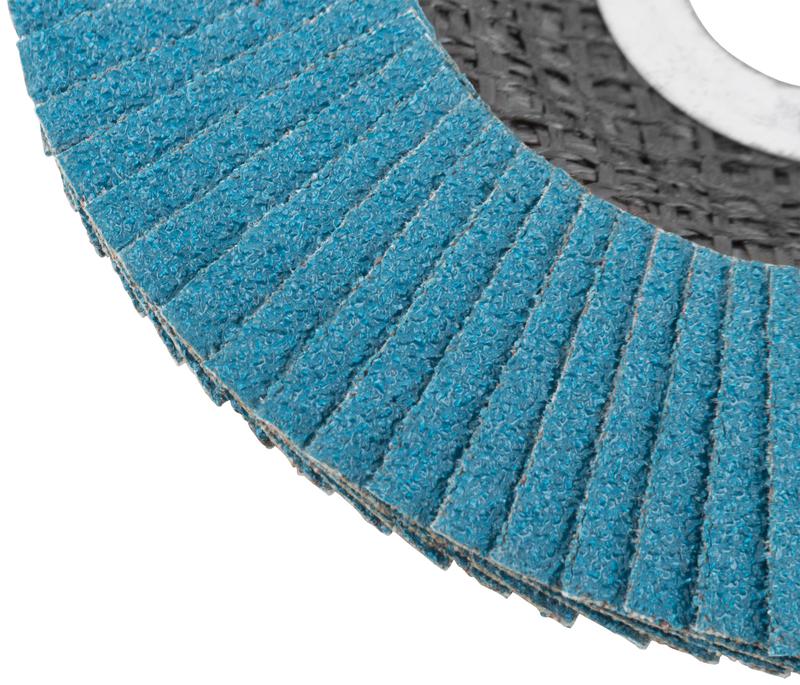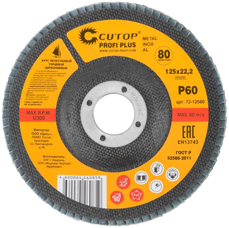 Круг наждачный лепестковый Cutop Profi Plus предназначен для обработки нержавеющей стали, металла, сварных швов, пластика, дерева. Для углошлифовальных машин. При изготовлении кругов используется высококачественный гибкий абразивный материал, состоящий из тканевой основы, на которую нанесен слой циркониевого электрокорунда. Круги на основе циркониевого электрокорунда имеют высокую прочность, коэффициент шлифования на кругах данного типа выше в несколько раз, чем у кругов на основе нормального электрокорунда, что особенно эффективно при работе с особо твёрдыми сортами металла. Структура циркониевого электрокорунда даёт эффект самозатачивания, что также увеличивает ресурс использования. Наполняемость диска составляет 80 лепестков с углом наклона 10 градусов, это позволяет увеличить КПД круга и его стойкость к износу в несколько раз.