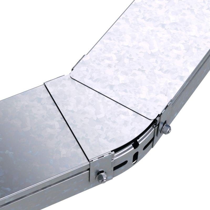 Крышка для изменяемого угла серии "S5 Combitech" применяется для защиты кабеля от внешних воздействий и механических повреждений. Ее применение повышает степень пыле- и влагозащиты IP (максимально достижимая степень защиты – IP 44). Аксессуар предназначен для изменяемых углов 0-45o серии "S5 Combitech" шириной 200 мм. Крышка фиксируется винтами. Длина - 142 мм. Аксессуары в исполнении "Цинк-ламель" имеют специальное покрытие на основе химически активной магниевой смолы, в которую добавлены хлопья алюминия и цинка. Такое покрытие обеспечивает электрохимическую и барьерную защиту от коррозии. Показатели коррозионной стойкости цинк-ламельного покрытия ДКС аналогичны показателям горячеоцинкованного покрытия.