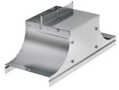 При построении кабельной трассы чаще всего требуется организовать ее изгибы и ответвления в горизонтальной и/или вертикальной плоскости. Для этого в системе "S5 Combitech" применяются аксессуары. Крышка-ответвитель TSS используется, если нужно организовать сложное ответвление кабельной трассы. Она имеет Т-образную форму. При ответвлении обеспечивается плавный изгиб, что предохраняет кабель от повреждения. Исполнение аксессуара – "сталь, оцинкованная по методу Сендзимира". Ширина лотка в горизонтальном направлении – 300 мм, в вертикальном – 300 мм, высота боковой стенки – 80 мм. Применение комплектных аксессуаров облегчает расчет числа необходимых элементов для монтажа – в комплект уже входят соединительные пластины и детали крепежа.