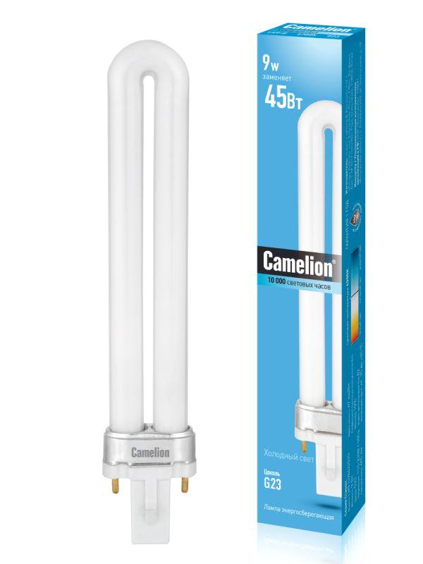 Энергосберегающая лампа Camelion предназначена для встраиваемых потолочных светильников и настольных ламп. Используется с электромагнитным балластом. ЭСЛ, мощность, Вт - 9, напряжение, В - 110-230, световой поток, лм - 605, форма колбы - U-образная, цвет колбы - белый, цоколь G23, цветовая температура, К - 4200, индекс цветопередачи 80+, срок службы, ч. - 10000