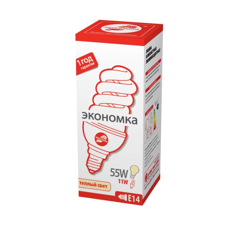 Лампа люминесцентная компакт. SPC 11Вт E14 спиральная 2700К T3 ЭКОНОМКА LKsmSPC11wE1427eco