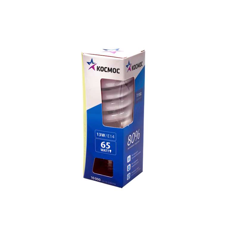 Лампа люминесцентная компакт. SPC 13Вт E14 спиральная 2700К КОСМОС LKsmT2SPC13wE1427