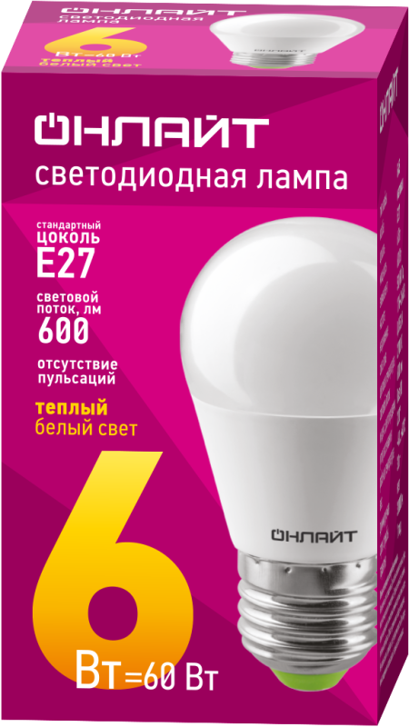 Лампа светодиодная 71 645 OLL-G45-6-230-2.7K-E27 6Вт шар 2700К тепл. бел. E27 450лм 220-240В ОНЛАЙТ 71645