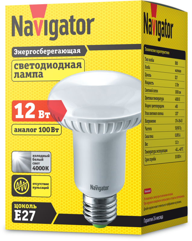 Лампа светодиодная 94 336 NLL-R80-12-230-4K-E27 12Вт 4000К нейтр. бел. E27 1000лм 176-264В Navigator 94336