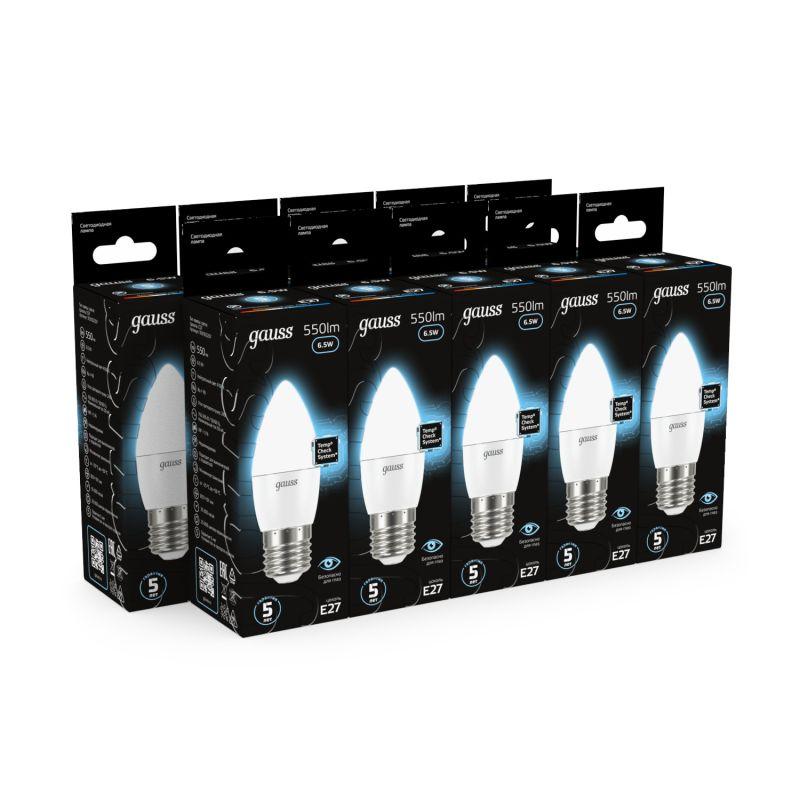 Лампа светодиодная Black 6.5Вт свеча 4100К нейтр. бел. E27 550лм GAUSS 103102207