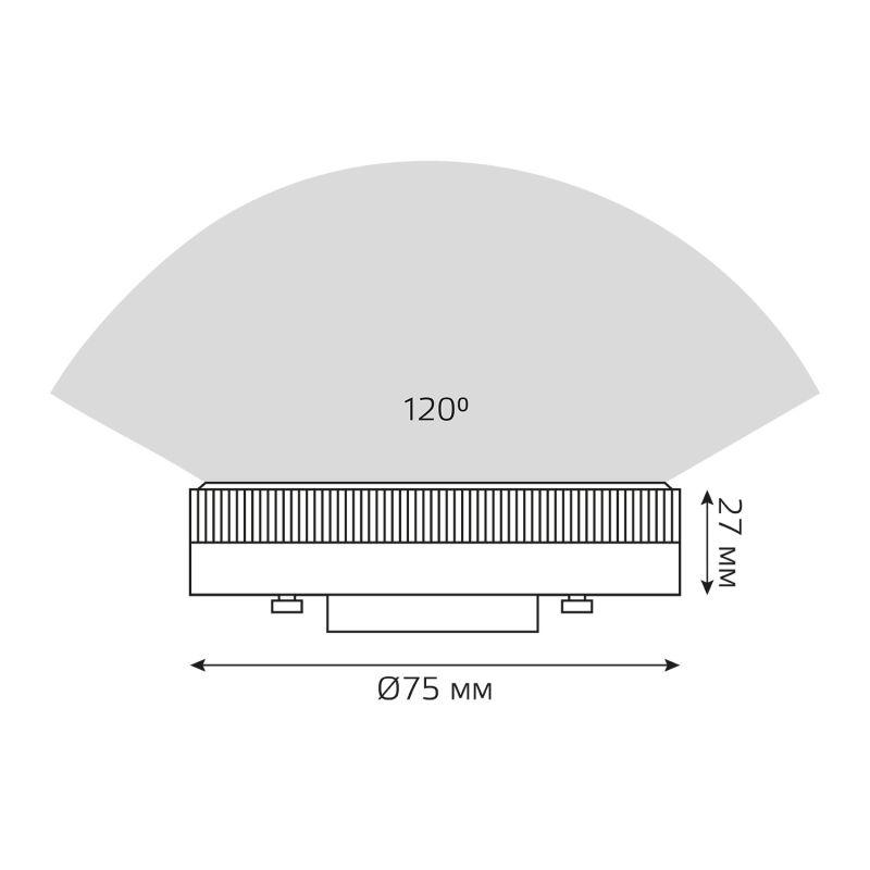 Лампа светодиодная LED GX53 8Вт 4100К Gauss 108008208 – лампа-"таблетка", холодного света, диаметром 75 мм, с цоколем GX53, мощностью 8 Вт. Цветовая температура 4100 К.