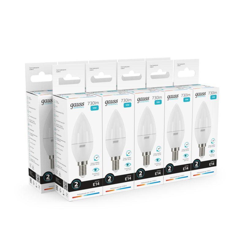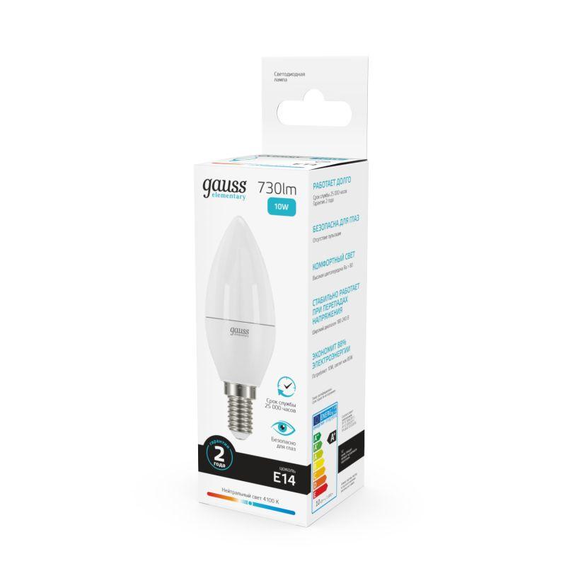 Лампа светодиодная Elementary 10Вт свеча 4100К нейтр. бел. E14 730лм GAUSS 33120