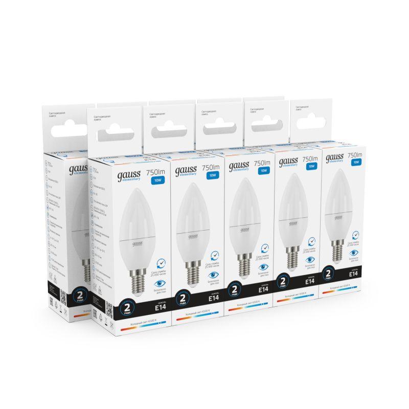 Лампа светодиодная Elementary 10Вт свеча 6500К холод. бел. E14 750лм GAUSS 33130