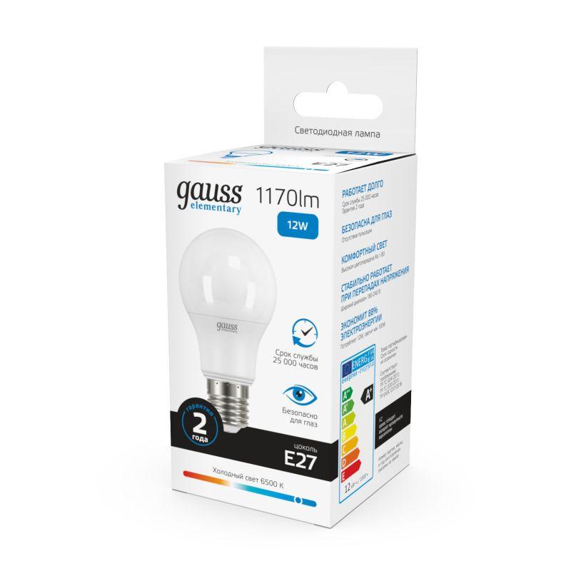 Лампа светодиодная Elementary 12Вт A60 грушевидная 6500К холод. бел. E27 1170лм GAUSS 23232