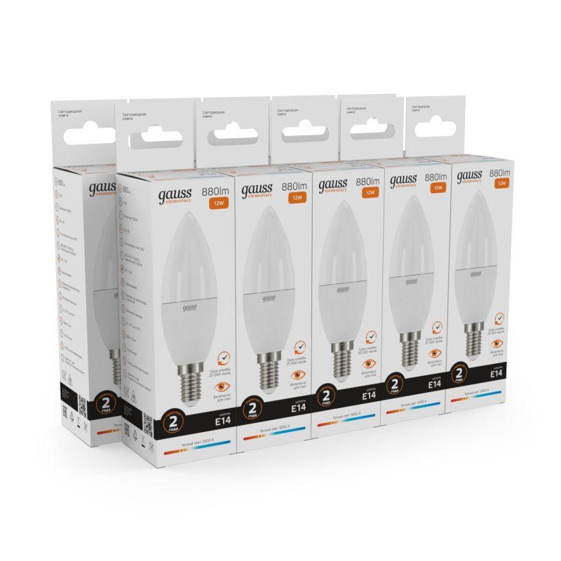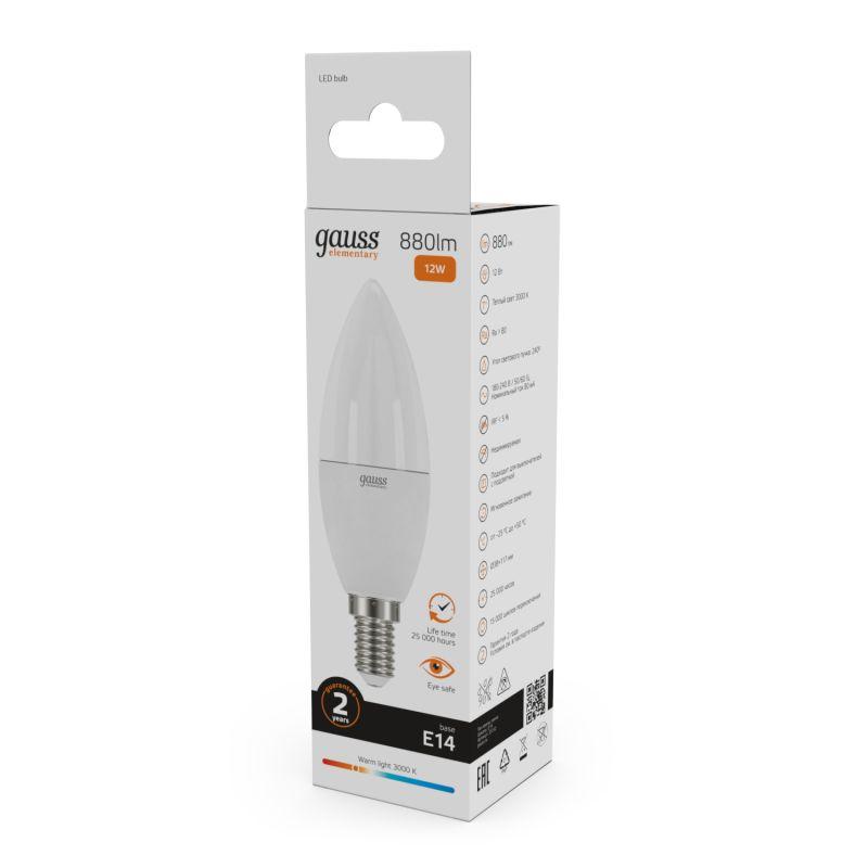 Лампа светодиодная Elementary 12Вт свеча 3000К тепл. бел. E14 880лм GAUSS 33112
