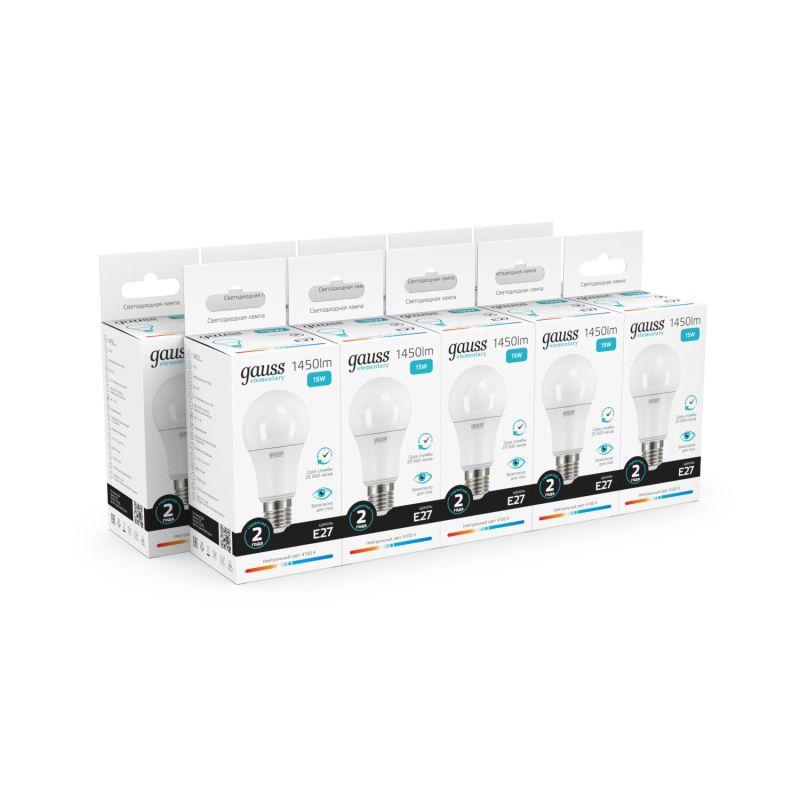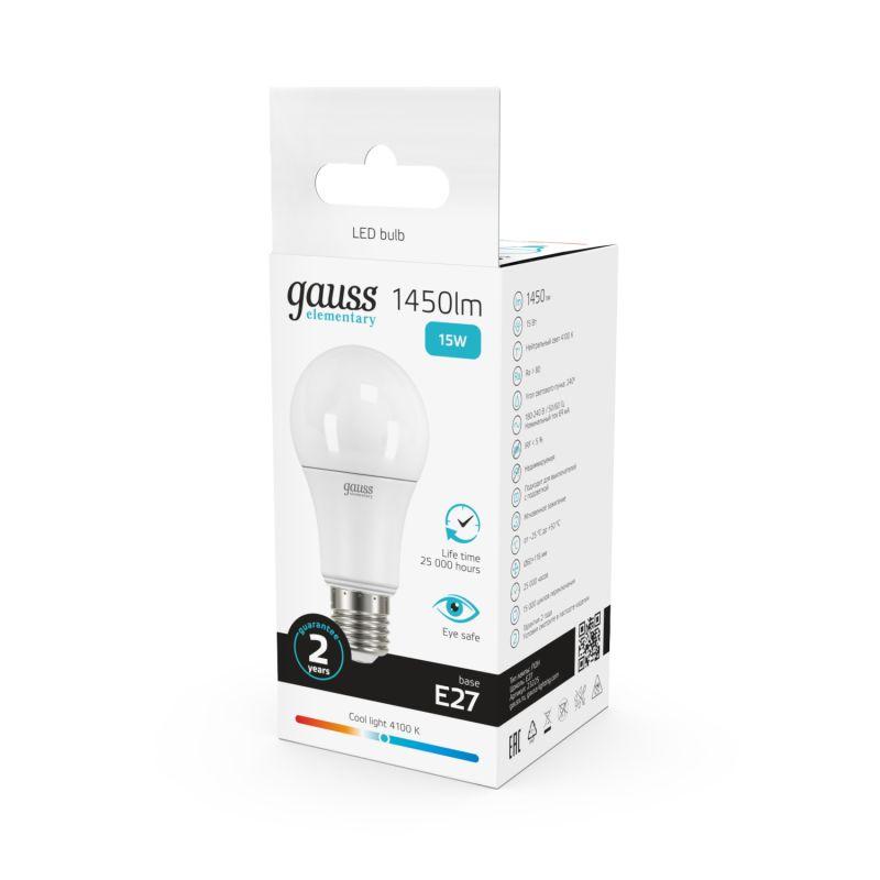 Лампа светодиодная Elementary 15Вт A60 грушевидная 4100К нейтр. бел. E27 1450лм GAUSS 23225