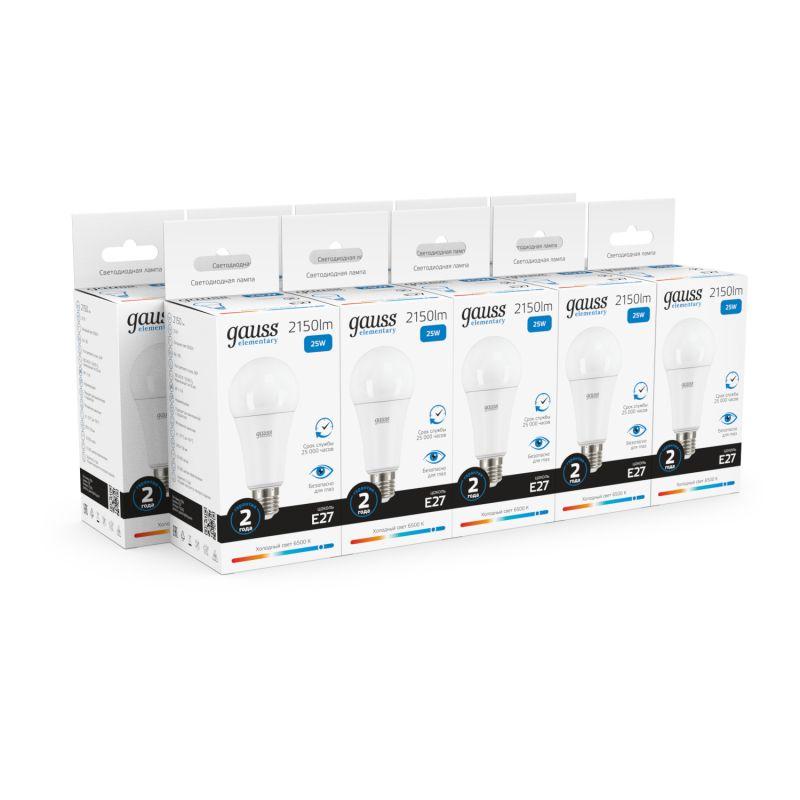Лампа светодиодная Elementary 25Вт A70 грушевидная 6500К холод. бел. E27 2150лм GAUSS 73235