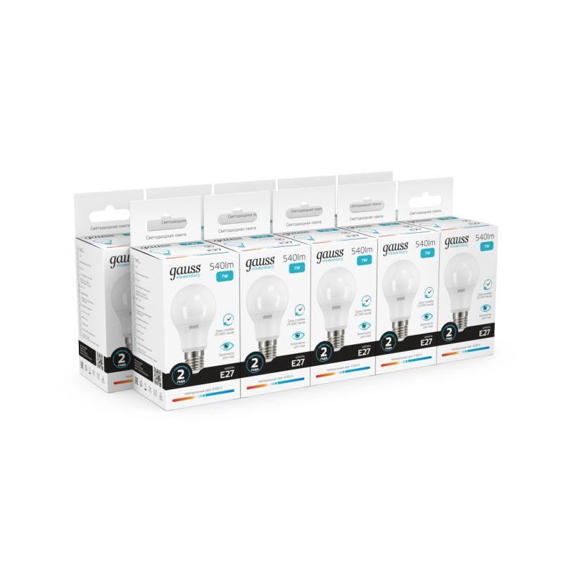 Лампа светодиодная LED Elementary Globe A60 7Вт E27 4100К Gauss 23227A – лампа с колбой вида "шар", желтого света, длиной 110 мм, диаметром 60 мм, с цоколем Е27, мощностью 7 Вт. Цветовая температура 4100 К.