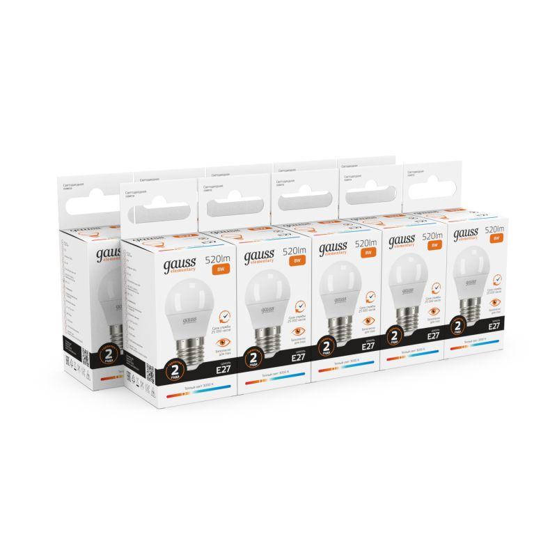 Лампа светодиодная Elementary 8Вт P45 шар 3000К тепл. бел. E27 520лм GAUSS 53218