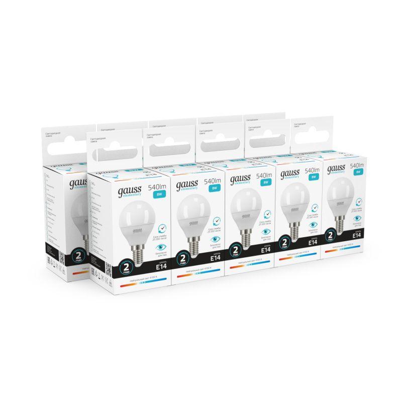 Лампа светодиодная Elementary 8Вт P45 шар 4100К нейтр. бел. E14 540лм GAUSS 53128