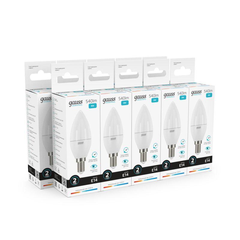 Лампа светодиодная Elementary 8Вт свеча 4100К нейтр. бел. E14 540лм GAUSS 33128