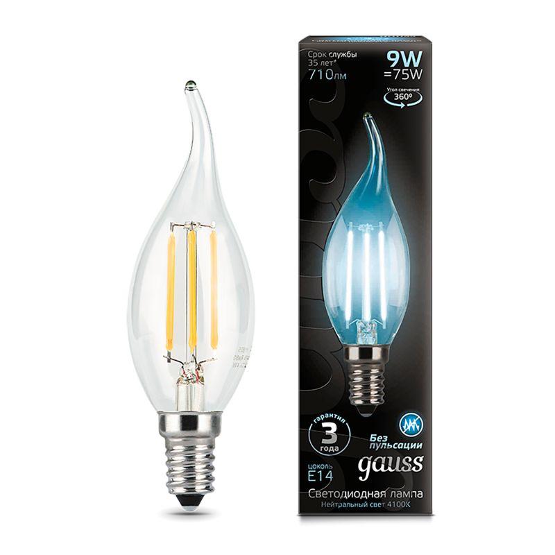 Лампа светодиодная филаментная Black Filament 9Вт свеча на ветру 4100К нейтр. бел. E14 710лм GAUSS 104801209