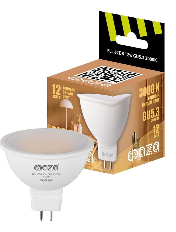 Лампа светодиодная FLL-JCDR 12Вт MR16 3000К тепл. бел. GU5.3 230В 50Гц ФАZА 5038684