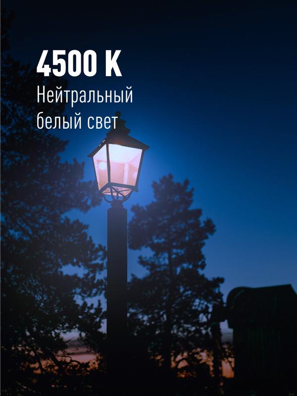 Светодиодная лампочка 40 Вт под стандартный цоколь Е27 для светильников 220В. По яркости заменяет лампы КЛЛ 65 Вт и ДРВ 160 Вт. Используется в купольных, консольных, и парковых светильниках, габариты лампы 100х168мм. Работает в диапазоне от 174В до 265В - не перегорит и не потеряет яркость при скачках напряжения в сети. Качественный свет, как у бытовых ламп, срок службы 30 000 часов. Цвет свечения лампы - 4500 К нейтральный белый – для общественных зон и пространств. 2 года гарантии