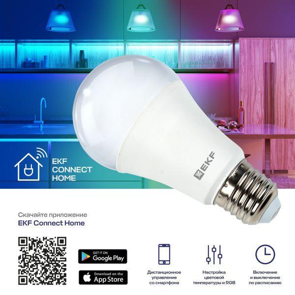 Умная лампа EKF Connect E27 позволяет изменять цветовую температуру, цвет и яркость, чтобы создать ту атмосферу, которая нужна в данный момент. Умными лампами можно дистанционно управлять по Wi-Fi с помощью мобильного приложения EKF Connect Home для iOS и Android. В приложении можно устанавливать расписание включения и выключения. Также поддерживается голосовое управление с помощью Алисы от Яндекса, Маруси от VK и Салюта от Сбера. Сценарии позволяют управлять несколькими устройствами с помощью одной голосовой команды или нажатия кнопки. Преимущества: Тёплый или холодный белый свет на выбор; Регулировка яркости; Цветная подсветка; Работает с iOS и Android; Работает с Алисой, Марусей и Салютом; Поддержка протокола Bluetooth Low Energy (BLE) для быстрого подключения и для прямого управления с телефона даже при отсутствии Wi-Fi; Применение: Автоматизация освещения в квартире; Цветная подсветка интерьера